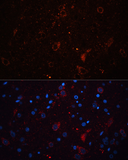 Immunofluorescence analysis of rat brain using DLG4 antibody. |
