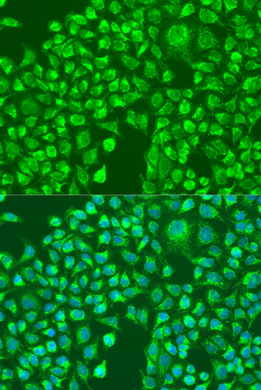 Immunofluorescence analysis of U2OS cells using DLG4 antibody.