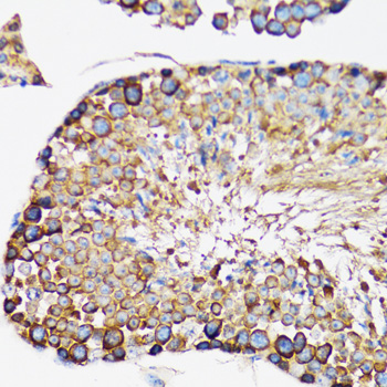 Immunohistochemistry of paraffin-embedded rat testis using IRAK4 antibody.