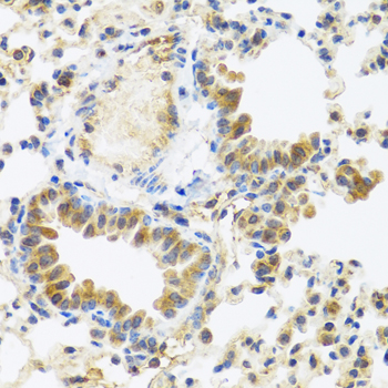 Immunohistochemistry of paraffin-embedded mouse lung using C8orf4 antibody. |