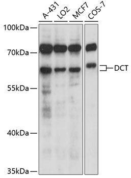 Western blot analysis of extracts of various cell lines, using DCT antibody. |