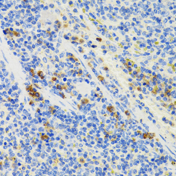 Immunohistochemistry of paraffin-embedded mouse spleen using GALT antibody.