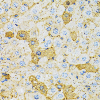 Immunohistochemistry of paraffin-embedded rat liver using OXA1L antibody.