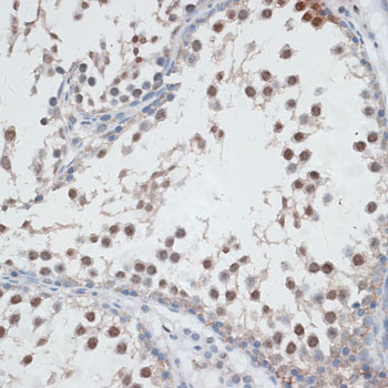 Immunohistochemistry of paraffin-embedded rat testis using AHSP antibody.
