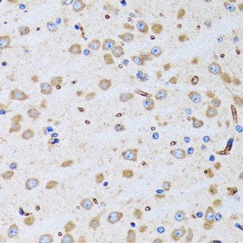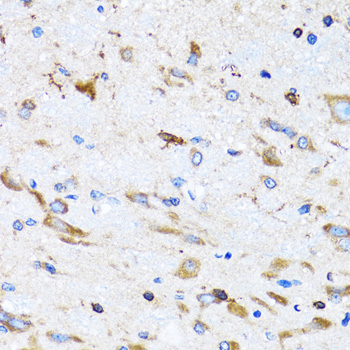 Immunohistochemistry of paraffin-embedded rat brain using PTRH2 antibody.
