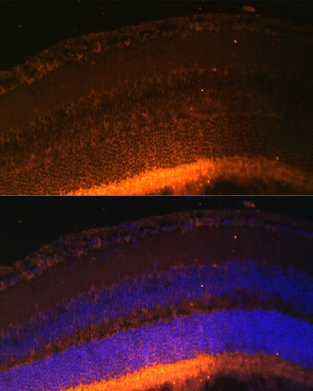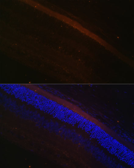 Immunofluorescence analysis of mouse retina using GRK1 Polyclonal Antibody. |