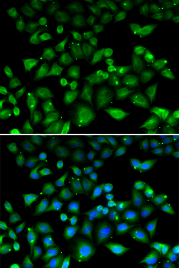 Immunofluorescence analysis of HeLa cells using NHLRC1 antibody. |