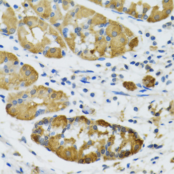 Immunohistochemistry of paraffin-embedded human stomach using PLA2G2D antibody. |