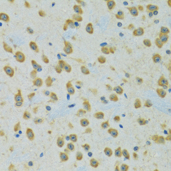 Immunohistochemistry of paraffin-embedded rat brain using RPS7 antibody.
