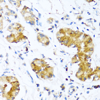 Immunohistochemistry of paraffin-embedded human stomach using WFDC2 antibody.