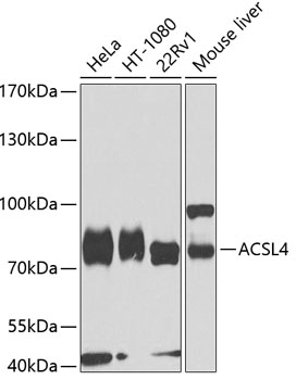 Western blot analysis of extracts of various cell lines, using ACSL4 antibody. |