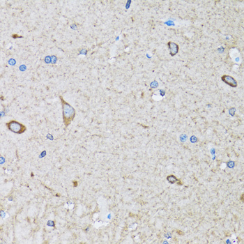 Immunohistochemistry of paraffin-embedded mouse brain using HIP1 antibody.