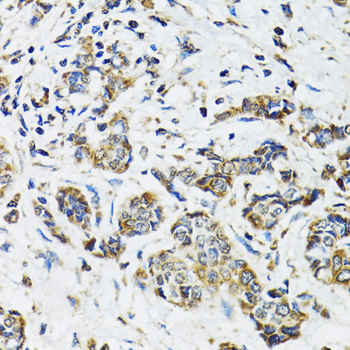 Immunohistochemistry of paraffin-embedded human breast cancer using SSBP1 antibody. |