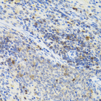 Immunohistochemistry of paraffin-embedded rat spleen using STAT4 antibody.