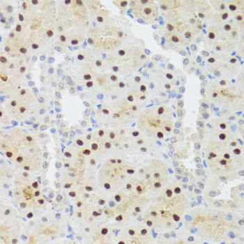 Immunohistochemistry of paraffin-embedded rat kidney using STAT4 antibody. |