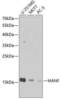 Western blot analysis of extracts of various cell lines, using MANF Antibody.