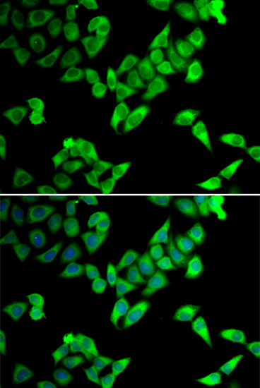 Immunofluorescence analysis of U2OS cells using TRIP10 antibody. |