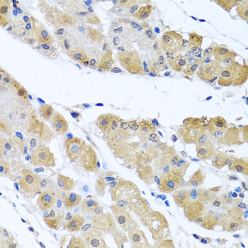 Immunohistochemistry of paraffin-embedded human stomach using OGFR antibody.
