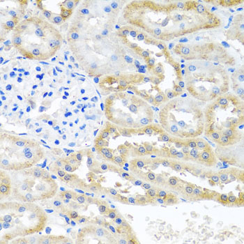 Immunohistochemistry of paraffin-embedded rat kidney using OGFR antibody. |