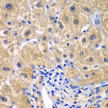Immunohistochemistry of paraffin-embedded human liver damage using CARD11 antibody.