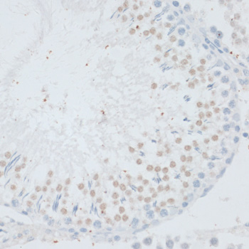Immunohistochemistry of paraffin-embedded rat testis using DNMT3B antibody. |