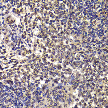 Immunohistochemistry of paraffin-embedded rat spleen using WBSCR22 antibody.