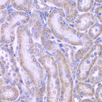 Immunohistochemistry of paraffin-embedded rat kidney using ACAA1 antibody. |