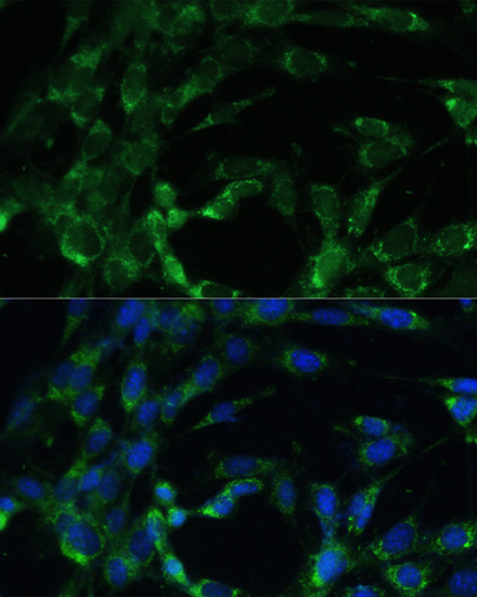 Immunofluorescence analysis of NIH-3T3 cells using BCAT2 antibody. |