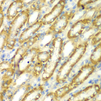 Immunohistochemistry of paraffin-embedded mouse kidney using TM9SF1 antibody. |