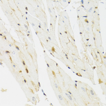 Immunohistochemistry of paraffin-embedded mouse heart using THAP1 antibody. |