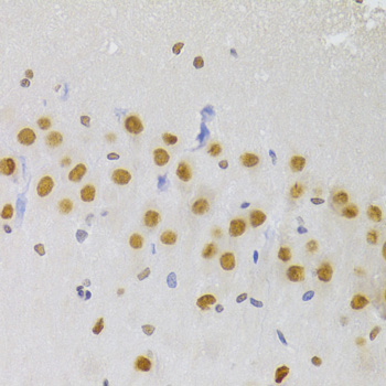 Immunohistochemistry of paraffin-embedded rat brain using HNRNPA1 Antibody. |