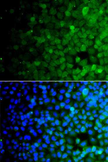 Immunofluorescence analysis of A549 cells using USP10 antibody. |