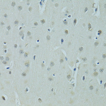 Immunohistochemistry of paraffin-embedded rat brain using ZNF346 antibody.