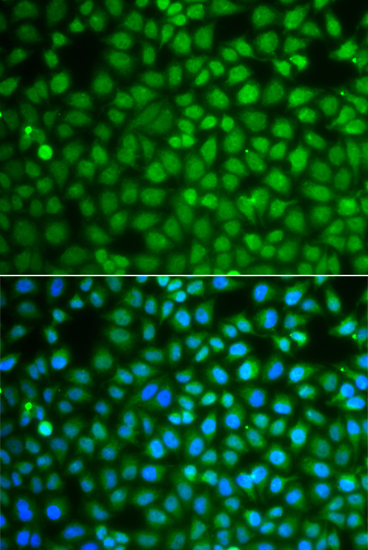 Immunofluorescence analysis of A549 cells using ZNF346 antibody. |