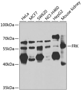 Western blot analysis of extracts of various cell lines, using FRK antibody.