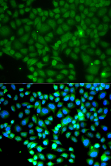 Immunofluorescence analysis of A549 cells using FRK antibody. |