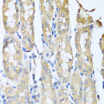 Immunohistochemistry of paraffin-embedded human gastric cancer using CCL3 antibody. |
