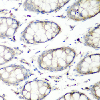 Immunohistochemistry of paraffin-embedded human colon using SH3GLB2 antibody. |