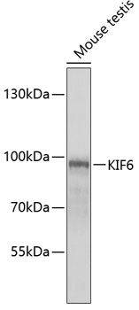 Western blot analysis of extracts of mouse testis, using KIF6 antibody. |