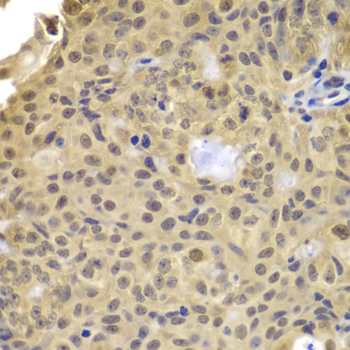 Immunohistochemistry of paraffin-embedded human well-differentiated squamous skin carcinoma using Cyclin A2 antibody.