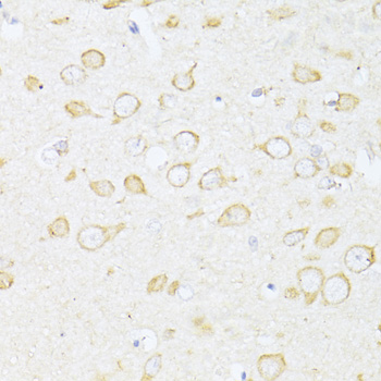 Immunohistochemistry of paraffin-embedded rat brain using SQSTM1 / p62 antibody.