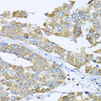 Immunohistochemistry of paraffin-embedded human liver cancer using COQ7 antibody. |