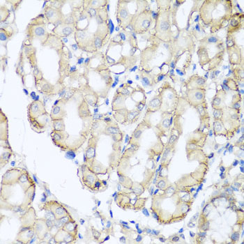 Immunohistochemistry of paraffin-embedded human stomach using AHCYL1 antibody.