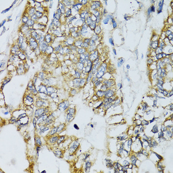 Immunohistochemistry of paraffin-embedded human gastric cancer using ECSIT antibody. |