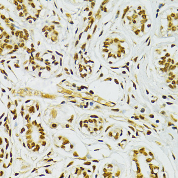 Immunohistochemistry of paraffin-embedded rat testis using ADAR antibody.