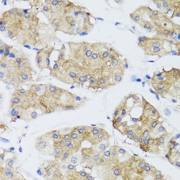 Immunohistochemistry of paraffin-embedded human stomach using FGF13 antibody.