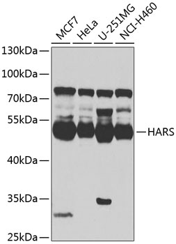 Western blot analysis of extracts of various cell lines, using HARS antibody.
