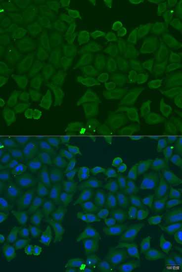 Immunofluorescence analysis of U2OS cells using IFNA6 antibody. |