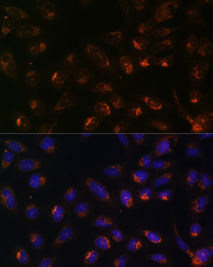 Immunofluorescence analysis of U-2 OS cells using ITPR1 antibody. |