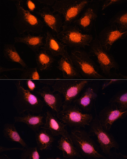 Immunofluorescence analysis of U2OS cells using TERF2IP antibody. |